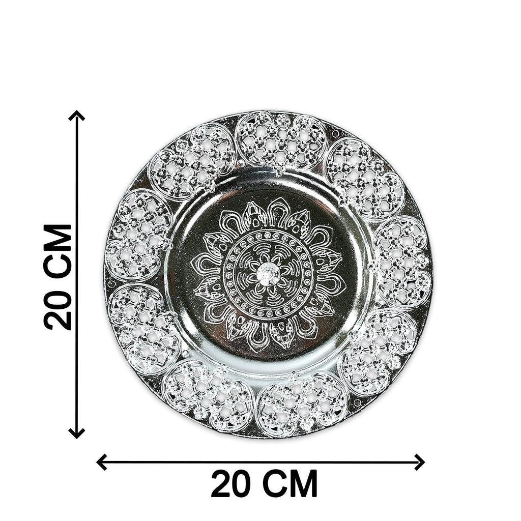 Decorative Designer Festival Ethnic Design Silver color Pooja Thali (8-inch/ Plastic)